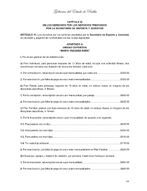 ARTÍCULO 41. Los derechos por los servicios prestados por la Secretaría de Deporte y Juventud,