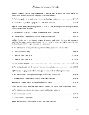 a) Plan Individual, para personas mayores de 15 años de edad, incluye una actividad fitness, dos