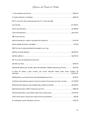 g) Área de gimnasio, hasta 15 personas, por hora………………...………………………………….$400.00