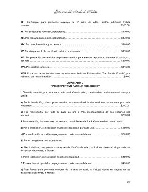XVII. Por casillero, por mes……………………………………………………………………………...$115.00