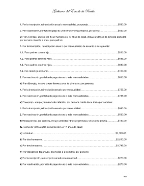1. Por la inscripción, reinscripción anual o por mensualidad…………………………………………$560.00