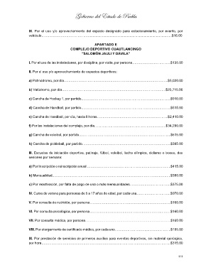 g) Cancha de voleibol, por partido..…….……………………………………………………………....$515.00