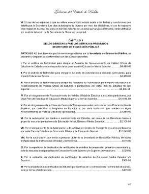 ARTÍCULO 42. Los derechos por los servicios prestados por la Secretaría de Educación Pública, se