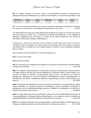 XX. Por cuota única para Bachillerato por examen, a través de Instituciones Educativas Particulares