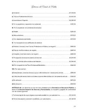 a) Parcial o completo, nivel Técnico Profesional en Música, con registro…………………………..$890.00