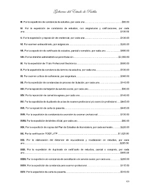 III. Por la expedición de constancia de estudios, por cada una………………………………………..$80.00