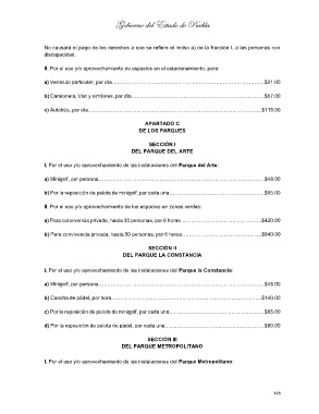 I. Por el uso y/o aprovechamiento de las instalaciones del Parque la Constancia: