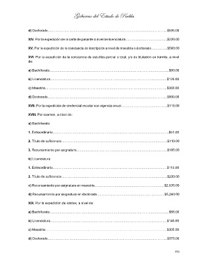 b) Licenciatura……………………………………………………………………………………………$125.00