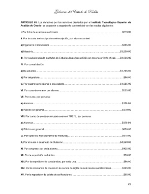 ARTÍCULO 65. Los derechos por los servicios prestados por el Instituto Tecnológico Superior de