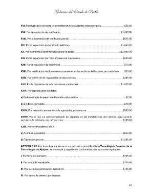 ARTÍCULO 66. Los derechos por los servicios prestados por el Instituto Tecnológico Superior de la