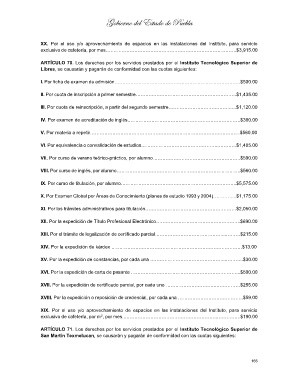 ARTÍCULO 71. Los derechos por los servicios prestados por el Instituto Tecnológico Superior de