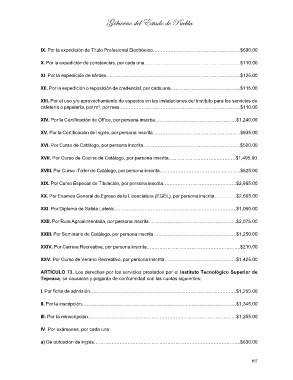 ARTÍCULO 73. Los derechos por los servicios prestados por el Instituto Tecnológico Superior de
