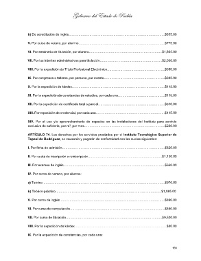 ARTÍCULO 74. Los derechos por los servicios prestados por el Instituto Tecnológico Superior de
