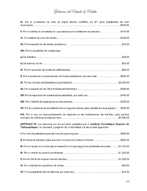 ARTÍCULO 76. Los derechos por los servicios prestados por el Instituto Tecnológico Superior de