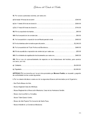 ARTÍCULO 79. Los derechos por los servicios prestados por Museos Puebla, se causarán y pagarán