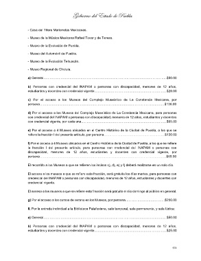 f) Por el acceso a 4 Museos ubicados en el Centro Histórico de la Ciudad de Puebla, a los que se refiere