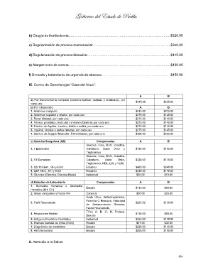 f) Drenado y tratamiento de urgencia de absceso…………………………………………………….$450.00
