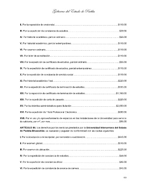 VIII. Por la expedición de certificado de estudios, parcial ordinario…………………………………...$56.00