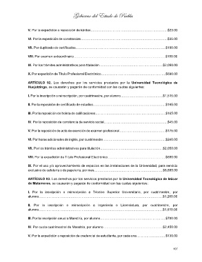 ARTÍCULO 93. Los derechos por los servicios prestados por la Universidad Tecnológica de Izúcar