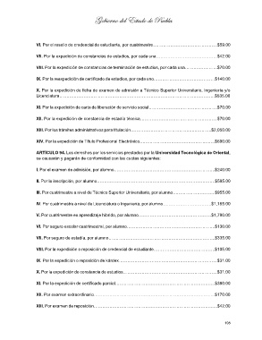 ARTÍCULO 94. Los derechos por los servicios prestados por la Universidad Tecnológica de Oriental,