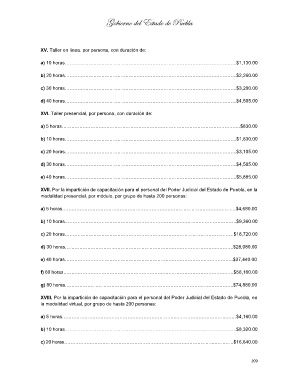 XVII. Por la impartición de capacitación para el personal del Poder Judicial del Estado de Puebla, en la