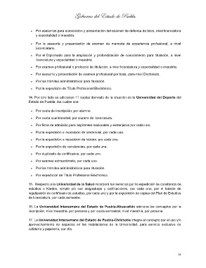 15. Respecto a la Universidad de la Salud incorpora los servicios por la expedición de constancia de