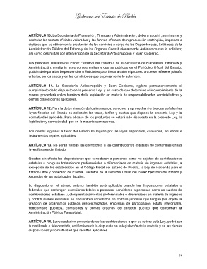 excepción de los establecidos en el Código Fiscal del Estado de Puebla, la Ley de Hacienda para el