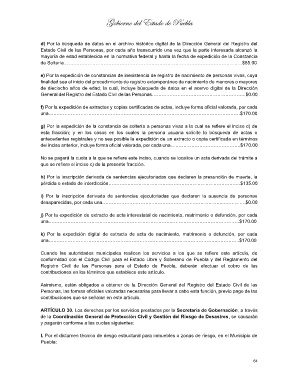 Registro Civil de las Personas para el Estado de Puebla, deberán efectuar el cobro de las