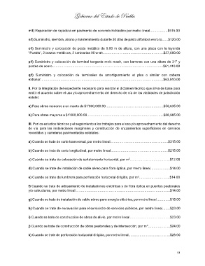 y/o estructuras, por metro lineal………………………………………………………………………….$14.00
