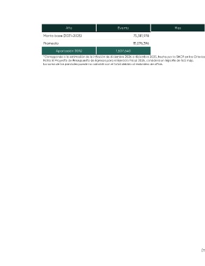 Año Evento Mes Aportación Inicial % Incremento Aportación Final