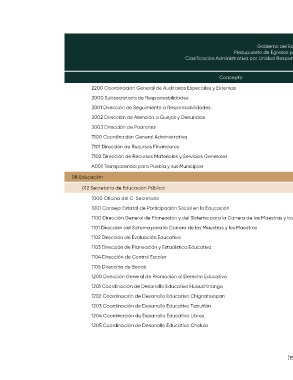 Clasificación Administrativa por Unidad Responsable de las Dependencias del Poder Ejecutivo