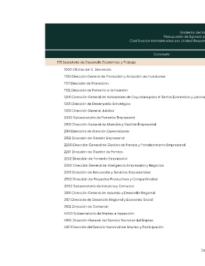 Clasificación Administrativa por Unidad Responsable de las Dependencias del Poder Ejecutivo