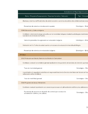 Ramo / Programa Presupuestario / Resumen Narrativo / Indicador Tipo - Dimensión Método de Cálculo Unidad de Medida Frecuencia Meta