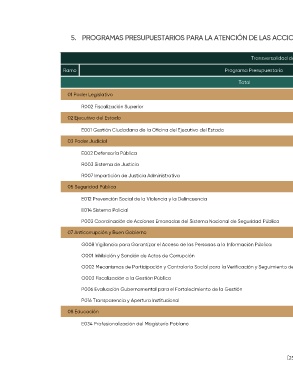 5. PROGRAMAS PRESUPUESTARIOS PARA LA ATENCIÓN DE LAS ACCIONES DE ANTICORRUPCIÓN