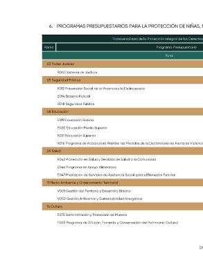 6. PROGRAMAS PRESUPUESTARIOS PARA LA PROTECCIÓN DE NIÑAS, NIÑOS Y ADOLESCENTES