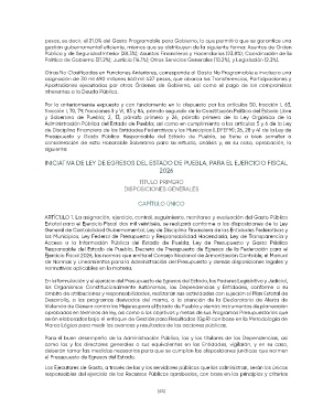 INICIATIVA DE LEY DE EGRESOS DEL ESTADO DE PUEBLA, PARA EL EJERCICIO FISCAL