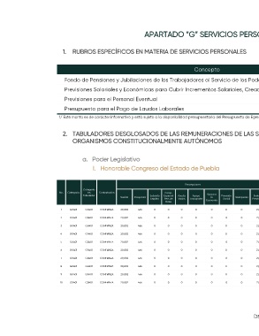 APARTADO “G” SERVICIOS PERSONALES: PLAZAS Y TABULADORES
