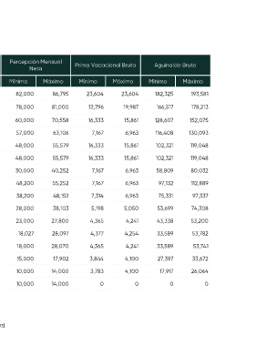 Percepción Mensual Percepción Mensual Prima Vacacional Bruta Aguinaldo Bruto