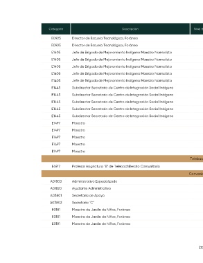 E1405 Jefe de Brigada de Mejoramiento Indígena Maestro Normalista 4 24,019 Base 7A 0 0