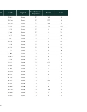 Categoría Descripción Nivel de Sueldo Sueldo Régimen Plazas Horas