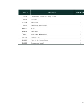 Categoría Descripción Nivel de Sueldo Sueldo Régimen Plazas Horas