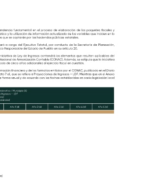 de la Ley de Ingresos deberá incluir proyecciones de finanzas públicas, por un periodo de cinco años adicionales al ejercicio fiscal en cuestión.