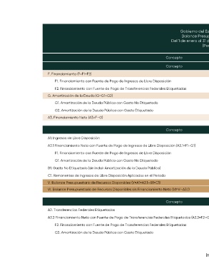 F2. Financiamiento con Fuente de Pago de Transferencias Federales Etiquetadas 0